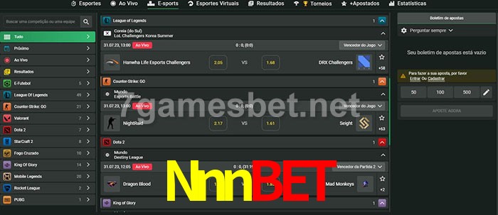 O Nnnbet oferece uma grande seleção de opções de apostas em e-sports com probabilidades competitivas